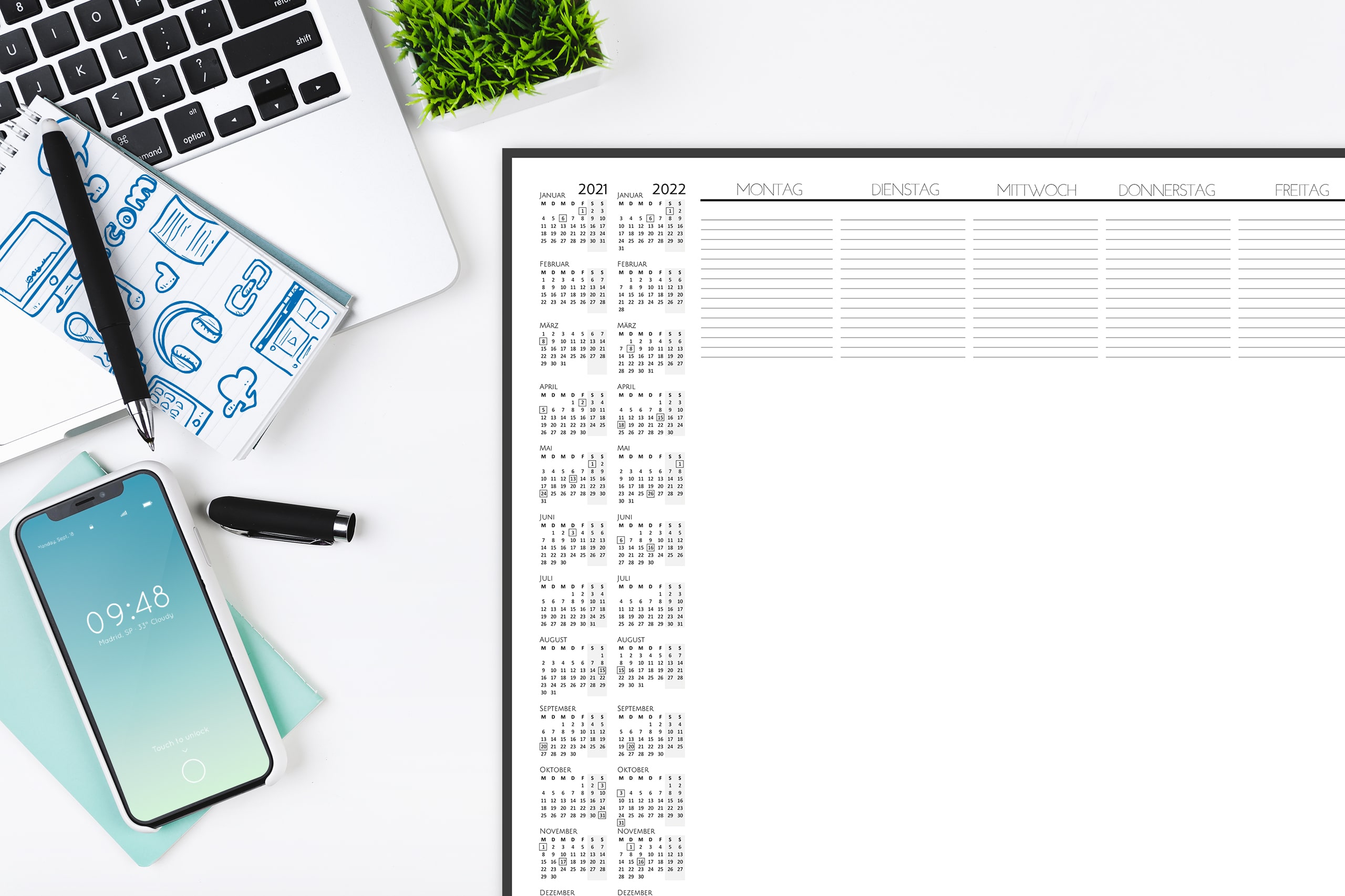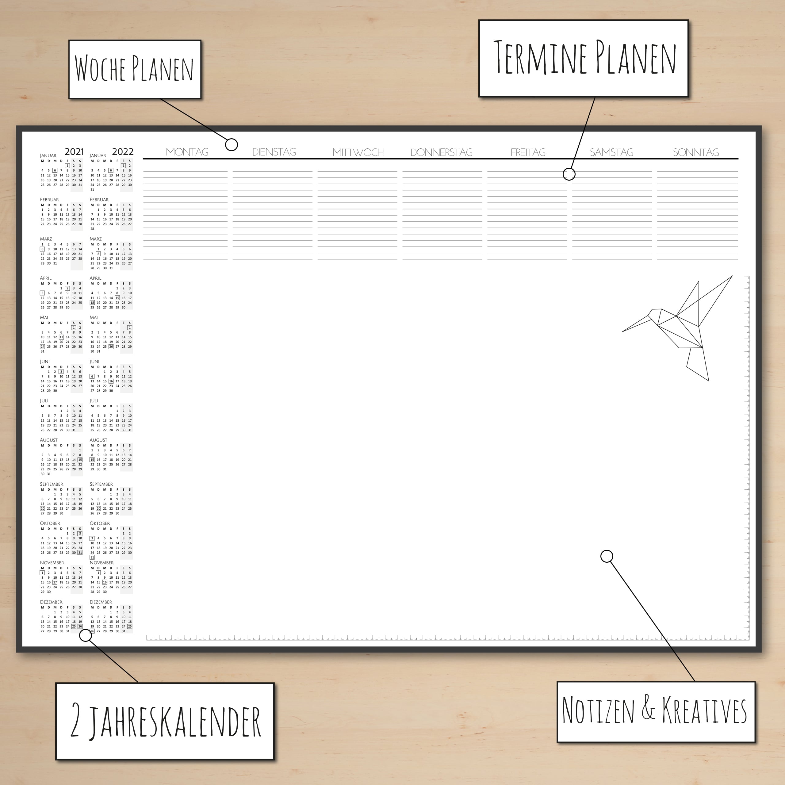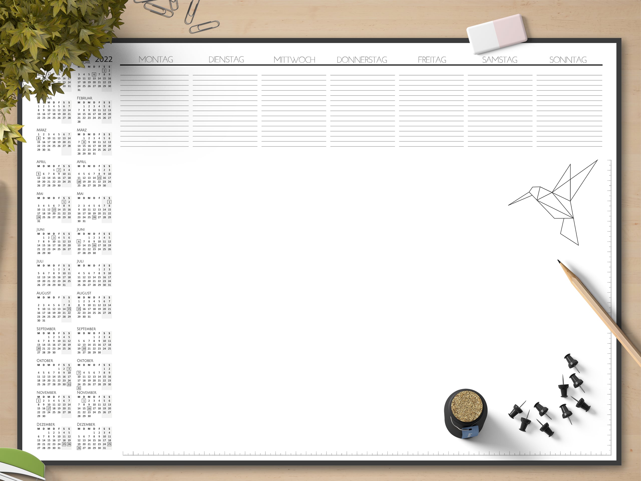 PERFEKT ORGANANISIERT – Deine Schreibtischunterlage mit Kalender gibt dir einen schnellen Überblick über die landesweiten Feiertage, der Wochenplan / Tagesplaner Block verschafft dir mehr Struktur.